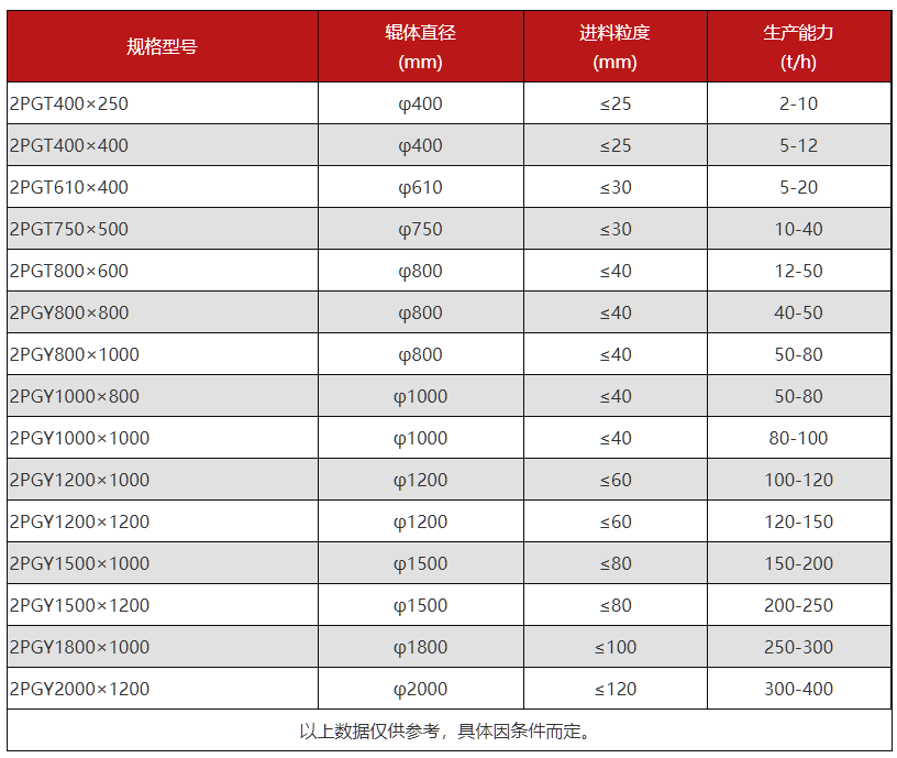 市場生產(chǎn)這類對輥制砂機(jī)設(shè)備的廠家有很多,不同廠家產(chǎn)出設(shè)備型號多少肯定是有差異的。這里以紅星對輥制砂機(jī)設(shè)備為例,具體設(shè)備型號規(guī)格羅列如下: