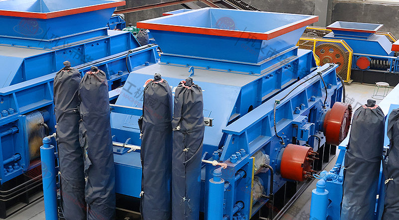 3.大型液壓對輥破碎機是砂石骨料生產設備制造領域的又一突破。大型液壓對輥破碎機又叫液壓對輥制砂機,它是用兩個電機帶動兩對輥軸來擠壓和研磨物料